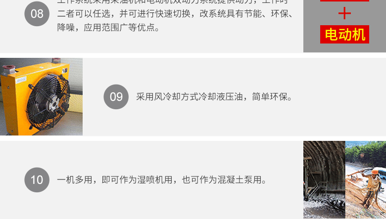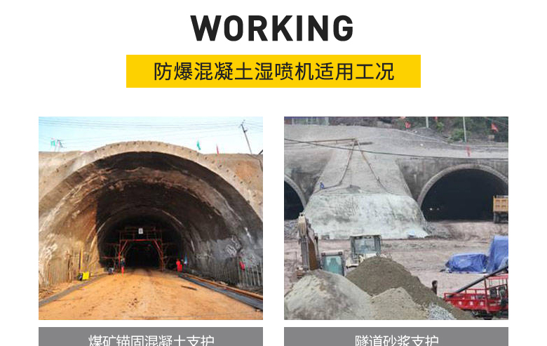 簡介:煤礦用混凝土濕噴機能明顯改善井下的施工環境,減少粉塵對井下工人的健康傷害,提高了支護強度,能有效控制混凝土的噴射質量,大大降低混凝土的回彈率。更有效降低了成本,提高煤炭企業的經濟效率和生產效率。