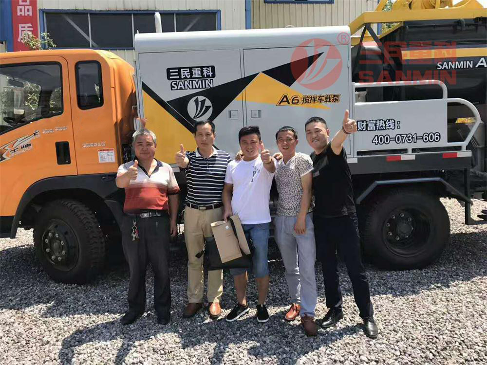 如果是在狹窄路況的地方,可以選擇三民得科攪拌拖泵(A1)HBT40Q或三民重科攪拌車載泵A6,轉場方便,限高不愁;如果工程量大點,可以選擇攪拌臂架泵。