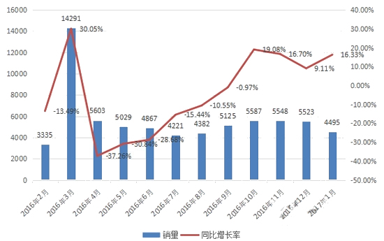 2017年1月裝載機銷量統計